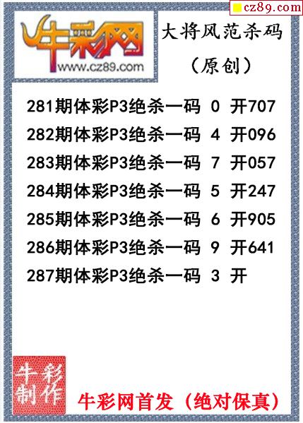 首页 > 排列3图谜 > 大将风范杀码287期体彩p3图谜(原创)